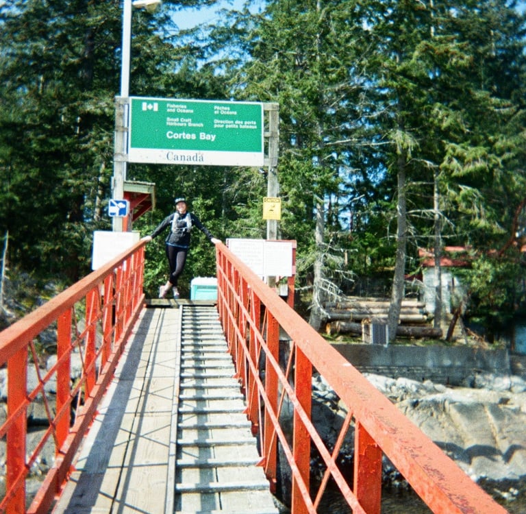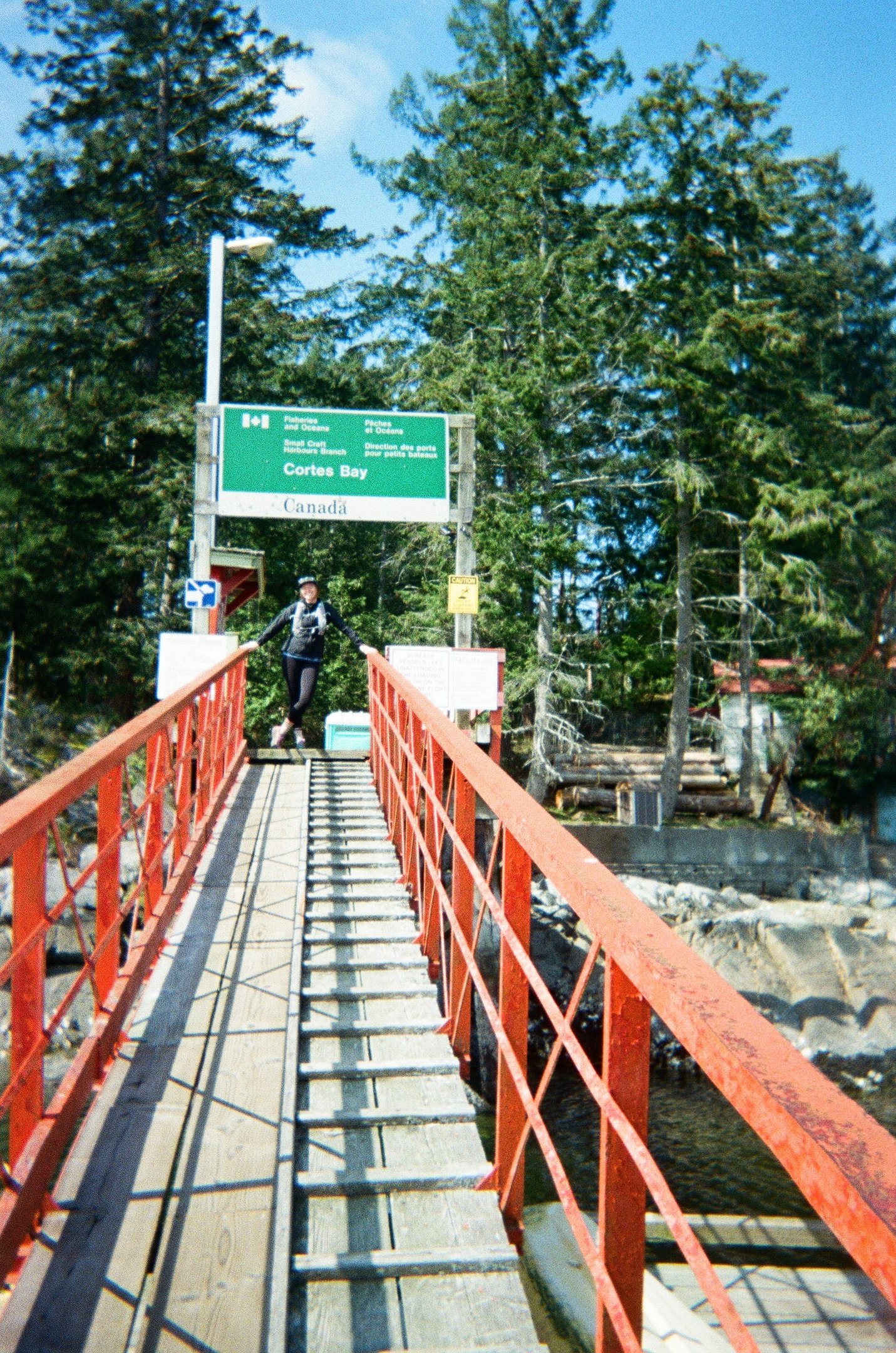 On foot you notice things you'd miss from the water or a car — the way the arbutus bark peels back to reveal that impossible chartreuse beneath, a family of otters lounging on the dock, the crumbling remnants of a hand-logged skid road disappearing into second-growth forest. And its so rewarding, because you really earn those views. You feel the actual shape of the land, and you see so much.